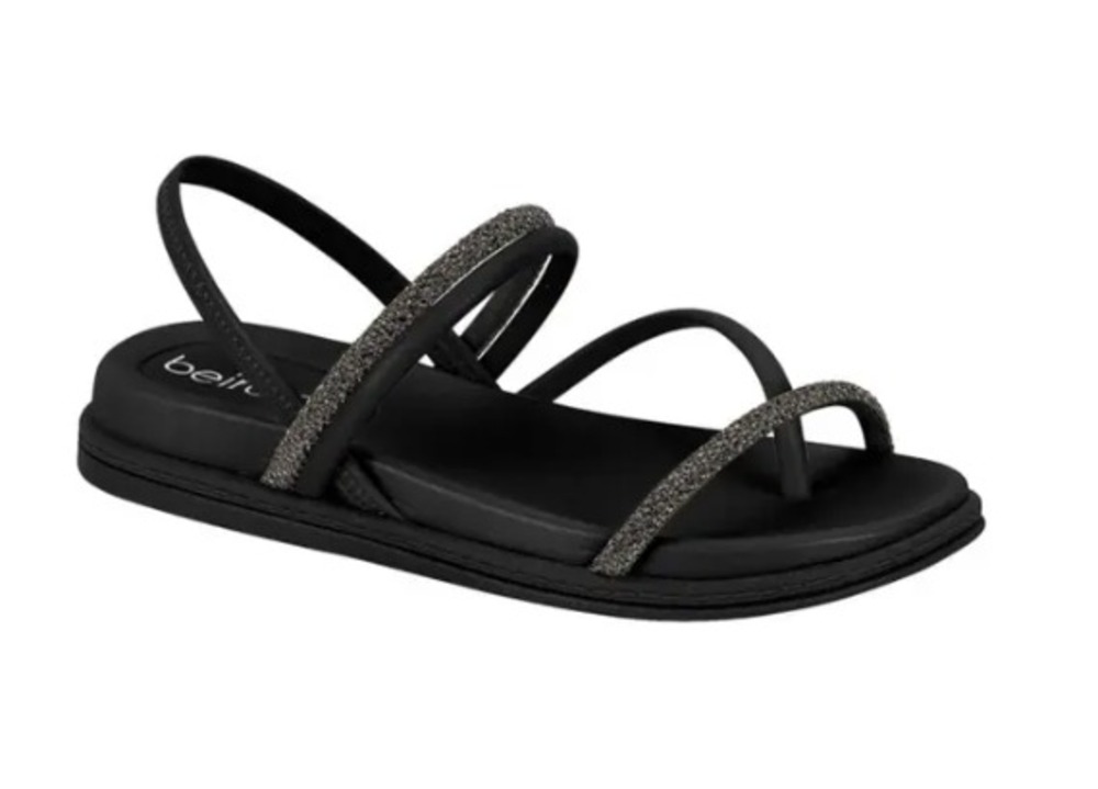 A Sandália Rasteira Feminina Beira Rio 8513.100 Preta é linda. É confeccionada em material sintético com detalhes em strass e fácil calce, essa sandália rasteira é moderna e versátil, podendo ser usada em ocasiões casuais e dia a dia.